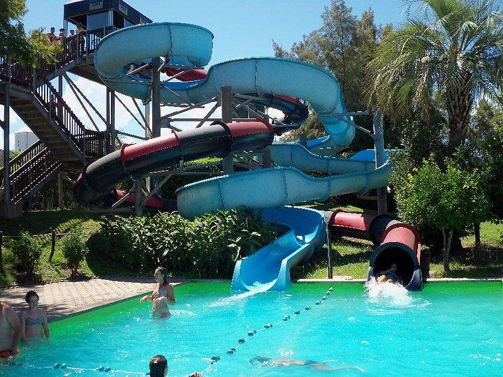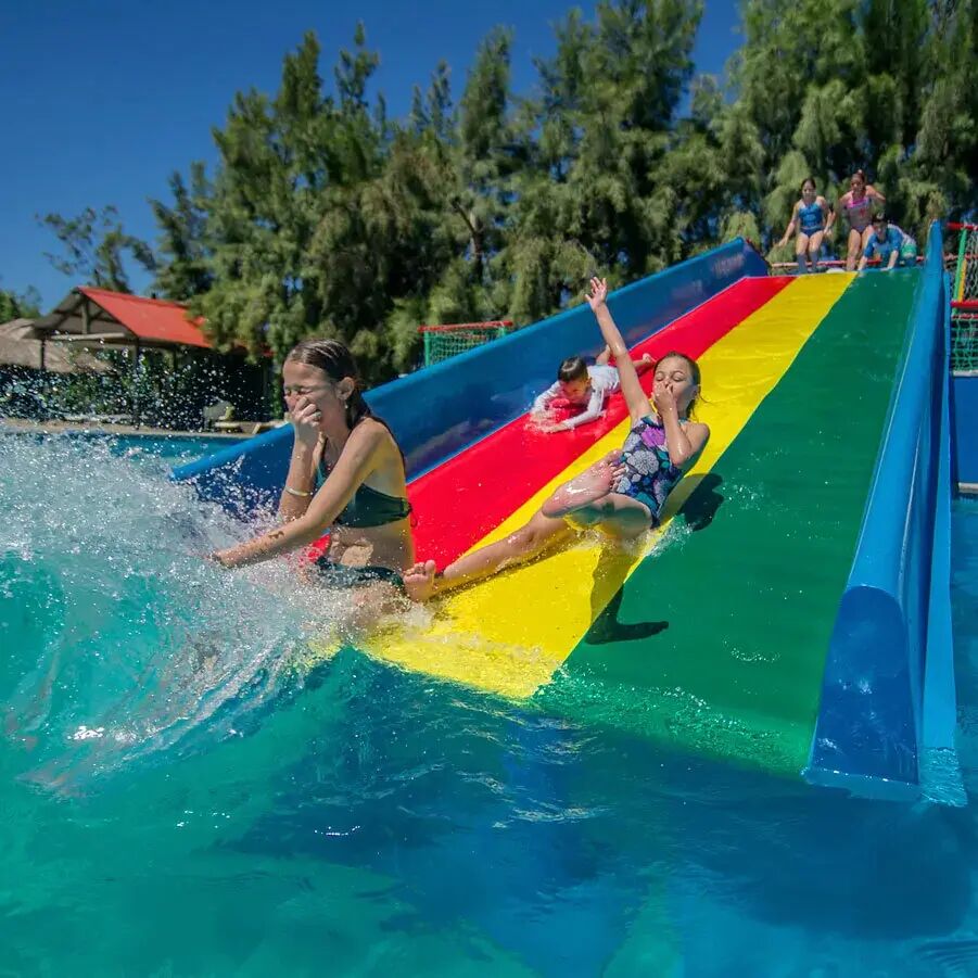 Torre de 20 metros con enormes toboganes de 18 metros de altura y tres vias de desplazamiento. Te deslizaras a mas de 60 Km. por hora! Tobogan semi-cerrado de 10 metros de altura en el que podés tirarte de frente y también acostado
